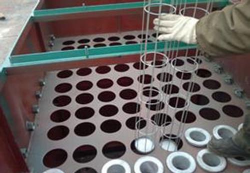除尘器花板制作对整台除尘器设备的影响:除尘器花板是决定除尘器外形尺寸的主因素,扁铁制做的花钢板孔对除尘器布袋保护.因为用槽钢和角铁费用都高,而且6mm的花板,很容易被槽钢和角铁的重量坠的变形,造成除尘器布袋磨损.因此,利用扁铁足矣材质比较好.