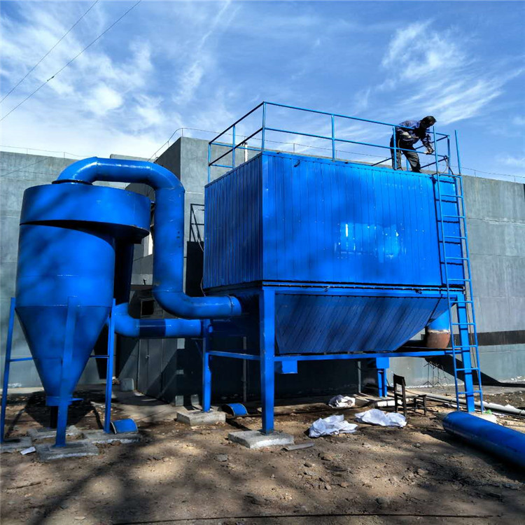2、处理高含尘浓度气体:可安装旋风除尘器或重力除尘设备作为预除尘(当粉尘或物料成品无需分级的情况下可直接使用袋式除尘设备),在构造上应尽量使粉尘直接落入灰斗或加些挡板,以减少附着于滤袋上的粉尘量,防止滤布的摩擦损坏,不应使高速运动的粉尘直接冲击滤布。
